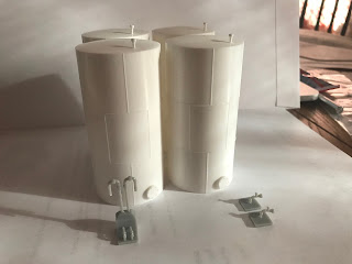 Here is a photo of the silos stacked two high. I think I need to cut the top silo down by 1/3rd.